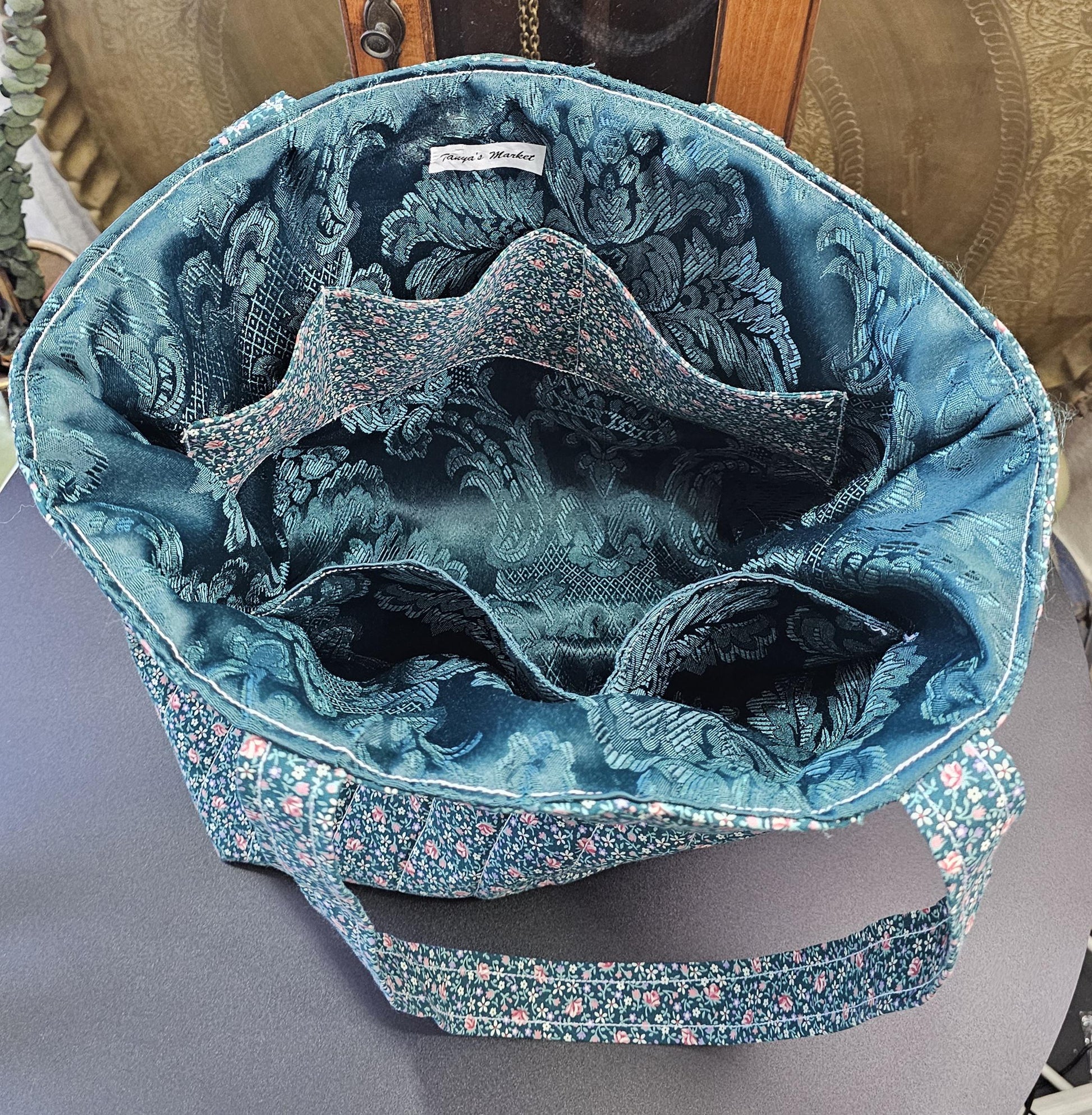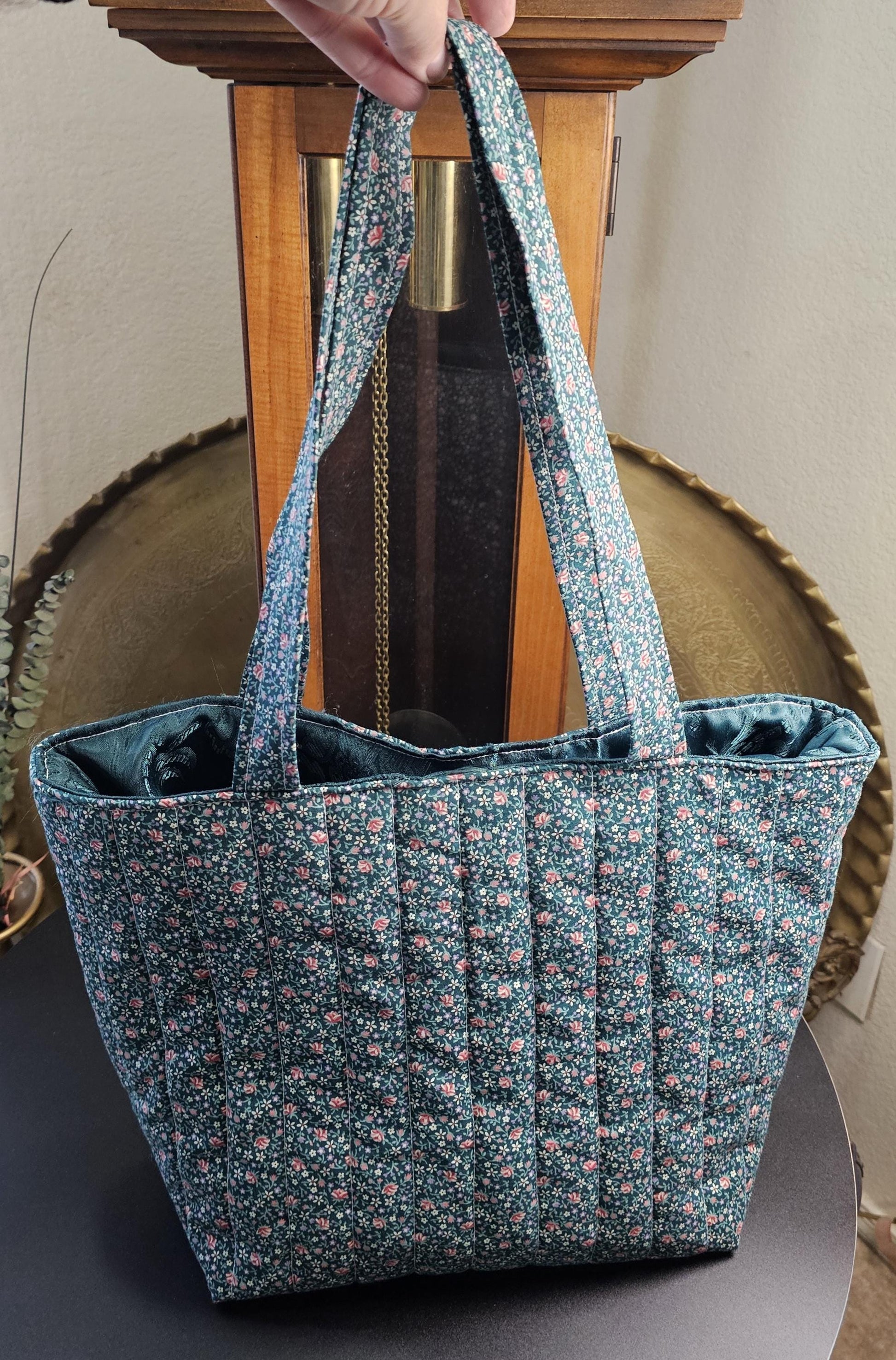 Handmade Floral Quilted Cotton Tote Bag with Pockets