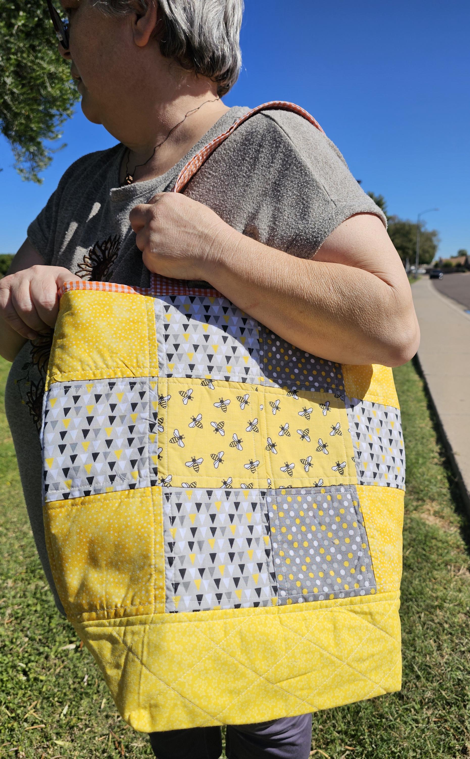 Beautifull Medium Tote Bag 100% handmade with 5x5 inch cotton square